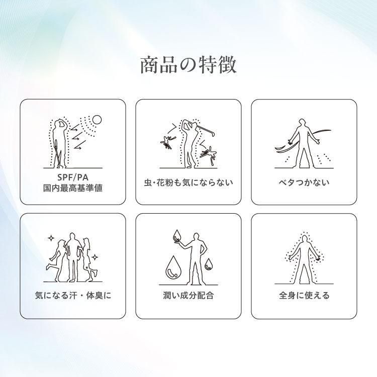 ラウンドに出発してから、急に日差しが強くなって紫外線が気になることや、耳や首筋など塗り忘れることに気付くことはありませんか?そんなときにでもシュっと一吹きするだけなのでいつでもどこでも瞬間ケアできます。女性はメイクの上に重ね塗りしてもメイクがくずれません。